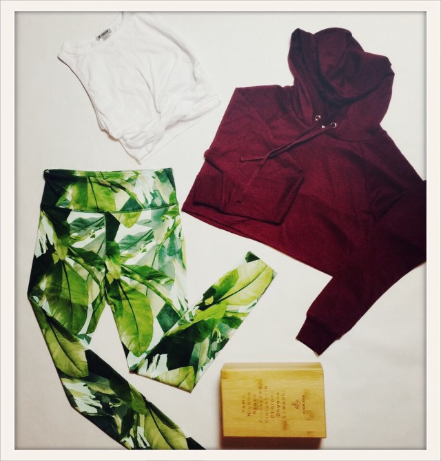 Photo Information: Crop Top, Hoodie, and Leggings by Forever 21, Yoga Block by Yoga Era.
