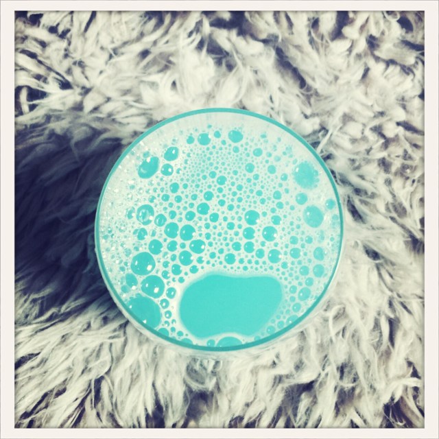 Mix the above ingredients into a glass. I start with the warm water, so I don’t get an overwhelming amount of bubbles in the final mixture.