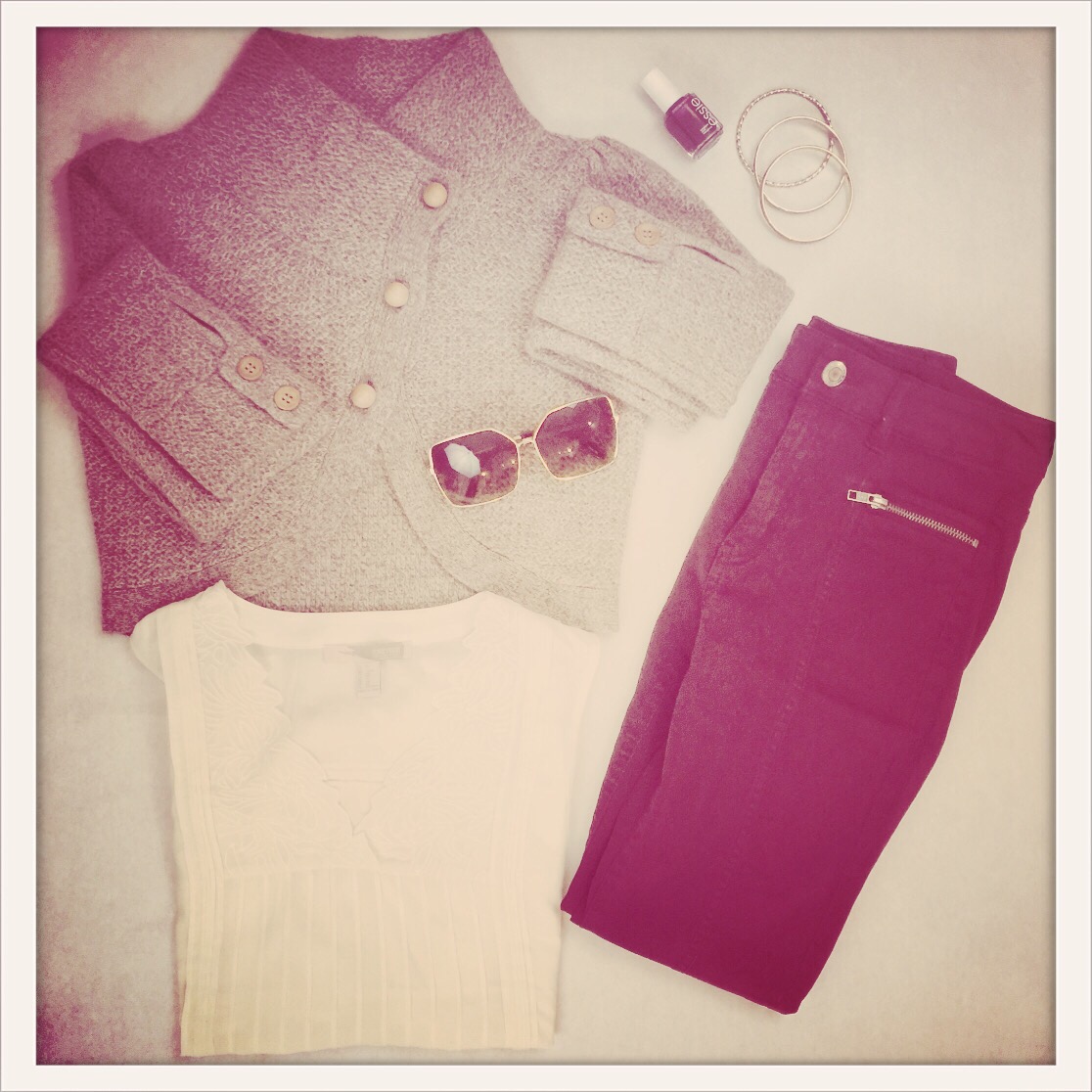 Photo Information: Cropped Sweater – Anthropologie, Burgundy Pants – American Eagle, Embroidered Blouse – Forever 21, Sunnies – The Sunglass Spot, Nail Polish – Essie in shade ‘Sole Mate,’ Bangle Bracelets – Forever 21